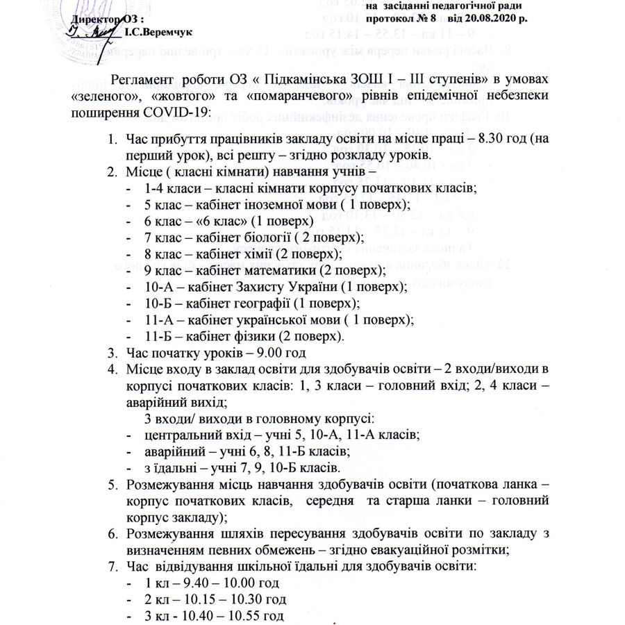 Регламент роботи під час пандемії